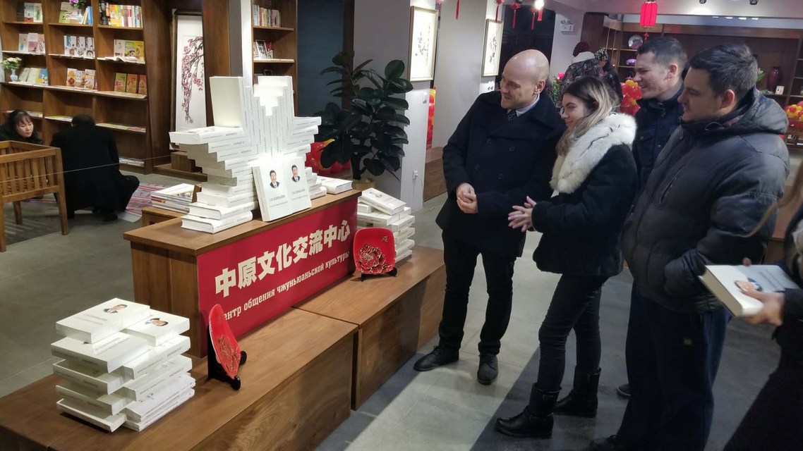 開業(yè)當(dāng)天,俄文版的《習(xí)近平談治國理政》《全面深化改革》《習(xí)近平2015年聯(lián)合國講話選編》《偉大貢獻(xiàn)(中國與世界反法西斯戰(zhàn)爭)(精)》《中國夢,什么夢》等圖書重點(diǎn)陳列并受到關(guān)注,為當(dāng)?shù)厝嗣窳私猱?dāng)前中國社會(huì)文化狀況提供了窗口,在中亞講好中國故事;還有美食烹飪、武術(shù)健身、中國旅游等方面書籍和俄漢工具書很受當(dāng)?shù)鼐用駳g迎;特別是活動(dòng)期間,市民對現(xiàn)場的茶藝表演、書法和瓷器展示產(chǎn)生了濃厚興趣。中原出版?zhèn)髅郊瘓F(tuán)還將繼續(xù)借助國家文化“走出去”這股東風(fēng),加強(qiáng)海外文化市場拓展,讓更多的中原文化交流中心在國際市場上落地生根,推進(jìn)中華文化在國外的傳播,向海外人士講述新時(shí)代中國的精彩故事,展現(xiàn)真實(shí)、立體、全面的中國。