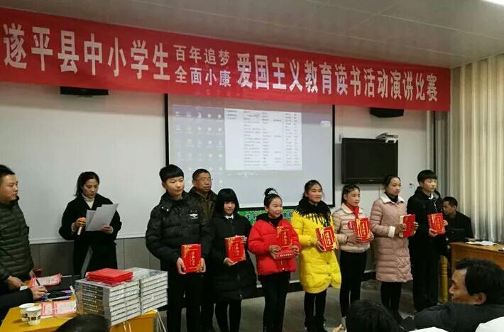 20171229日上午,遂平縣店與遂平縣委宣傳部、遂平縣教育體育局聯(lián)合舉辦了以“百年追夢 全面小康”為主題的愛國主義教育讀書活動演講比賽。來自全縣中小學校的26支代表隊共41名中小學生參加了比賽?h委常委、宣傳部長閆慧勇,宣傳部副部長、縣電視臺臺長梁軍峰,縣教育體育局副局長王隨柱,該店經(jīng)理張麗君出席了活動。