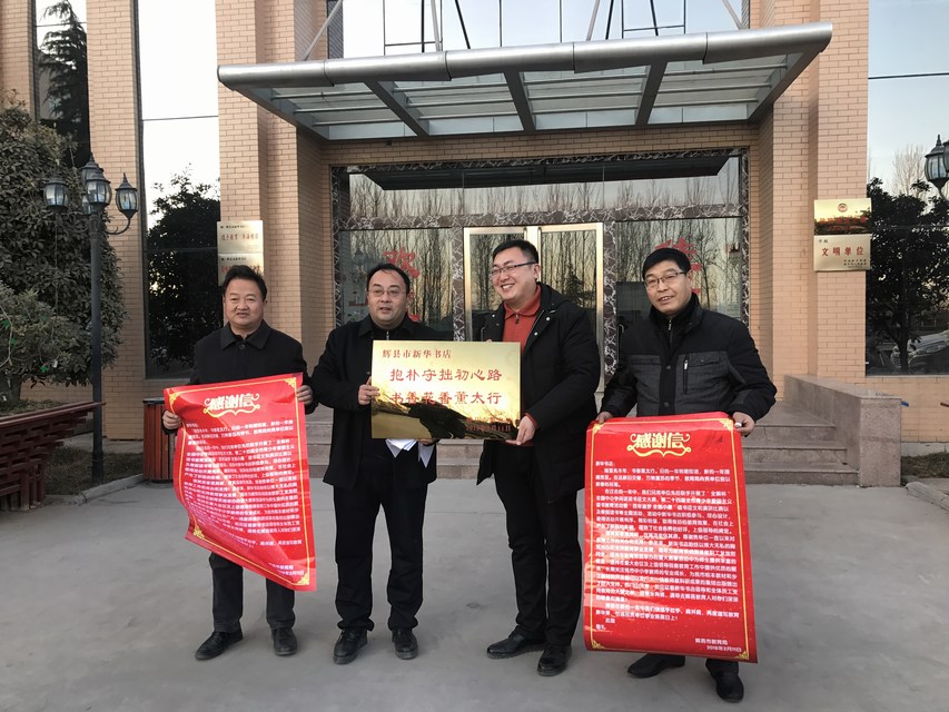近日,輝縣市教育局副局長王琪一行代表教育局黨委來到輝縣市店,他們給該店送來了一個抱樸守拙初心路,書香花香熏太行并送來感謝信一封,充分肯定了輝縣市店2017年的工作,并對店多年來對教育工作的支持表示感謝。這是輝縣市教育局連續(xù)三年給該店送來牌匾和感謝信。