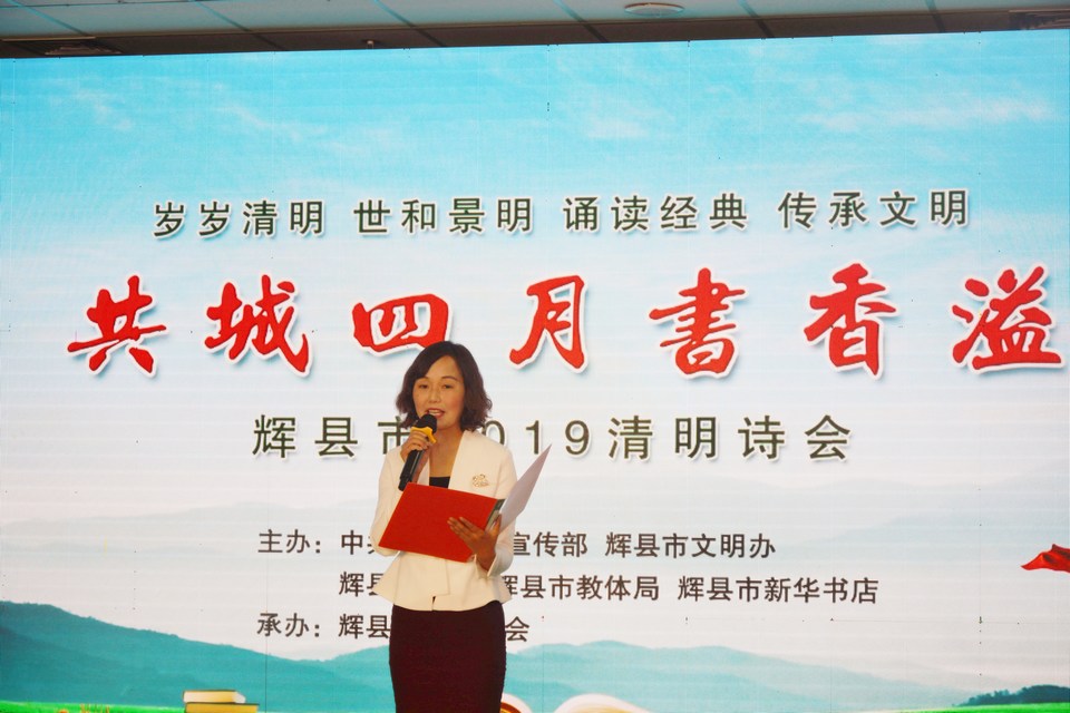 4月4,由輝縣市委宣傳部、教育局、文聯(lián)、文明辦和輝縣市新華書主辦,輝縣市朗誦協(xié)會承辦的共城四月書香溢”輝縣市2019清明詩會,在書店圖書大廈舉辦。