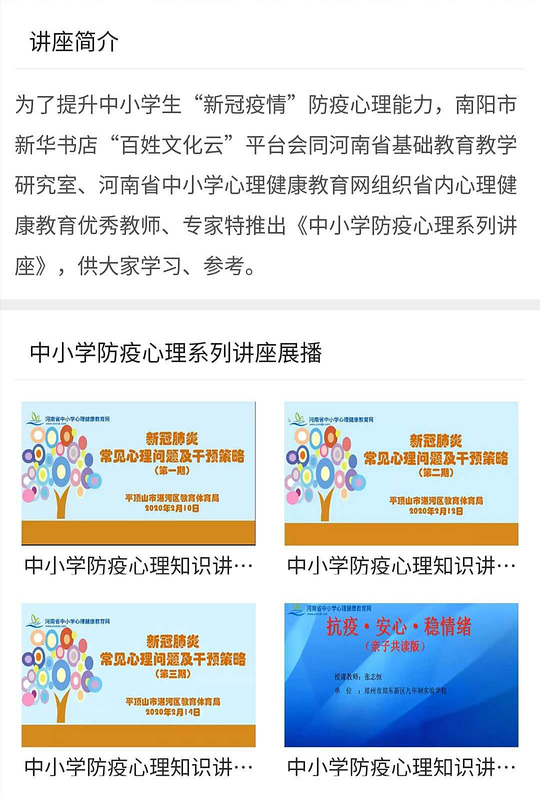 《中小學防疫心理知識講座》上線百姓文化南陽云