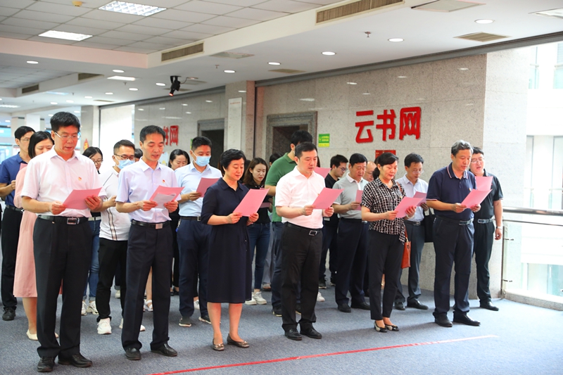 活動中,省委宣傳部文化企業(yè)黨建辦公室主任趙凱以“不忘崢嶸歲月、致敬繁華時代—老兵的情懷”為題講了一堂精彩的微黨課,回顧了人民軍隊成立的歷史及紅25軍在我省光榮的長征歷程;發(fā)行集團黨委書記亓新民介紹了新華書店紅色基因的歷史傳承和發(fā)展壯大的歷史沿革,闡釋了發(fā)行集團發(fā)揚“新華精神”,以黨建引領生產(chǎn)經(jīng)營所取得的高質(zhì)發(fā)展成效;全體黨員重溫了入黨誓詞,集體朗誦了詩歌《我是共產(chǎn)黨員》。