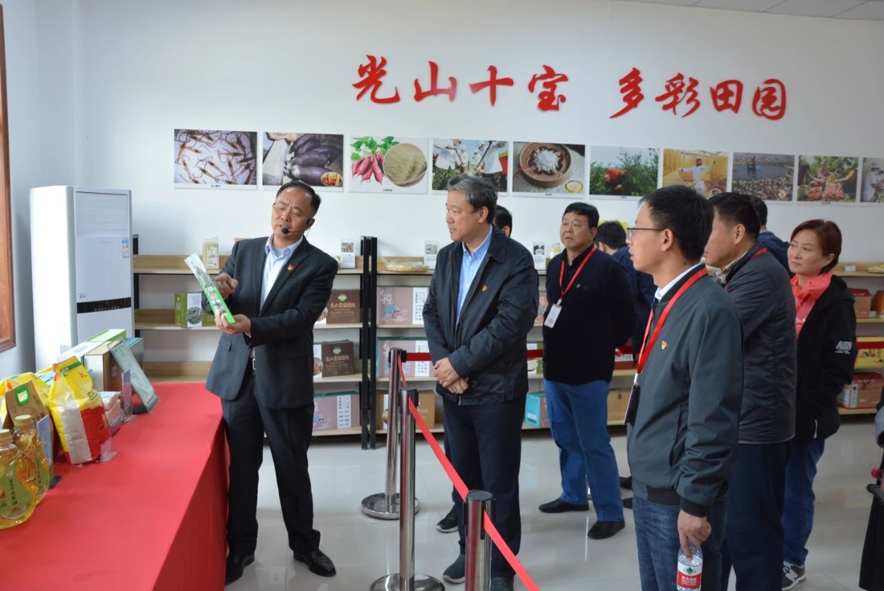 十月的光山,金菊匝地,丹桂飄香。大家首先來到司馬光油茶園。去年的9月17日,習(xí)近平總書記來到這里,了解光山縣發(fā)展油茶產(chǎn)業(yè)、推動脫貧整體情況。大家在油茶園展廳仔細聆聽講解員介紹總書記視察時的情況,跟著總書記的足跡,走進漫山遍野開滿白色油茶花的茶園,感受著脫貧攻堅帶來的實實在在的變化。在東岳村文化接待中心,黨總支書記楊長家為大家講述了總書記視察時的細節(jié),介紹了東岳村大力推進“多彩田園”產(chǎn)業(yè)扶貧,云書網(wǎng)電商扶貧以及新華超市運營情況。隨后,賈巍和亓新民等參加此次活動的發(fā)行集團領(lǐng)導(dǎo)班子前往兩家貧困戶進行走訪慰問。