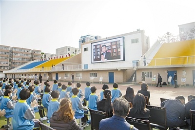 在視頻播放北京大學(xué)風(fēng)光旖旎的校園春景的背景下,該校拉開(kāi)了“同讀紅色《火印》,共上思政大課——曹文軒給市十中師生的一堂閱讀課”活動(dòng)序幕。