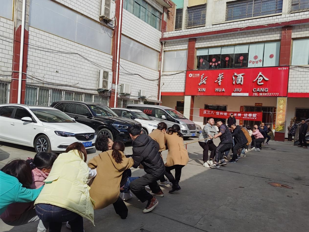 為迎接“三八婦女節(jié)”來臨,活躍節(jié)日氣氛,豐富職工的文化生活,增強(qiáng)職工的凝聚力。3月1日,新密店組織開展拔河比賽、跳繩、踢毽子、跳棋、象棋、撲克等慶“三八”文體活動(dòng)。