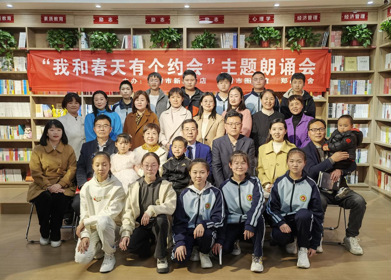 3月19日下午,由登封市新華書店、登封市圖書館、鄭品書舍主辦,以“我和春天有個約會”為主題的首屆“登封市全民朗誦會”,在我店少林路店成功召開。朗誦會上,來自社會各界的20余名朗讀者,以獨誦、合誦、親子誦等方式,飽含深情的分享了《黃河頌》、《面朝大海,春暖花開》、《三月的詩篇》、《每到春天》等優(yōu)美篇章,通過詩歌領(lǐng)略春回大地、萬物生發(fā)的勃勃生機(jī),通過詩歌體味掙脫嚴(yán)寒、破土重生的昂揚力量,通過詩歌凝聚飽含希望、勇毅前行的奮進(jìn)精神。