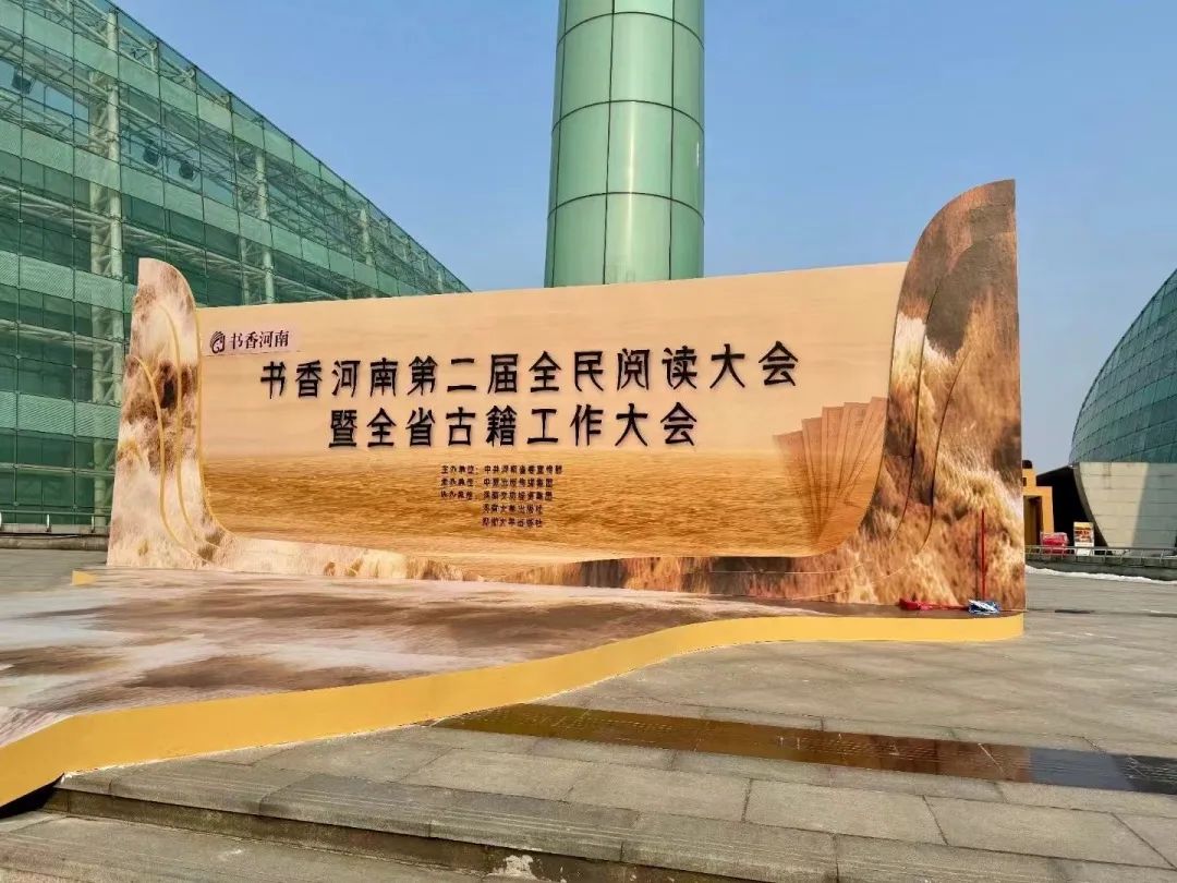 此次大會(huì)設(shè)置文脈書(shū)香展和河南古籍展。文脈書(shū)香展區(qū)整體采用“天圓地方、天地之中”的設(shè)計(jì)思路,設(shè)置了反映習(xí)近平新時(shí)代中國(guó)特色社會(huì)主義思想和黃河文化、興文化工程的圖書(shū)主題展區(qū),并以歷史為序,設(shè)置文脈傳承區(qū),包括“華夏曙光、漢唐輝煌、大宋夢(mèng)華、明清風(fēng)韻、紅色賡續(xù)”五大板塊,集中展示700種反映中華優(yōu)秀文化傳承創(chuàng)新的圖書(shū)。在五大主題板塊周邊設(shè)有豫版精品圖書(shū)展區(qū)和數(shù)字展區(qū),分別展示數(shù)百種豫版精品圖書(shū),以及中原出版?zhèn)髅郊瘓F(tuán)的融合出版創(chuàng)新項(xiàng)目、文創(chuàng)產(chǎn)品等,同時(shí)還組織書(shū)法、拓印、掐絲琺瑯、《山海經(jīng)中國(guó)神獸圖鑒》AR沉浸式體驗(yàn)等多項(xiàng)互動(dòng)活動(dòng)。整個(gè)展區(qū)動(dòng)靜結(jié)合、虛實(shí)相融,既讓讀者和觀展群眾感受到良好的閱讀氛圍,又能感受到現(xiàn)代科技賦能的新場(chǎng)景、新體驗(yàn)。