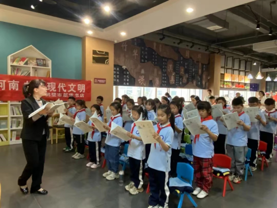 為切實帶動全省讀者在共話閱讀之美、分享思想盛宴、文化實踐結(jié)合、文旅融合轉(zhuǎn)化中,推進(jìn)閱讀引領(lǐng)和文化吸引的影響力拓展至基層一線、各個領(lǐng)域,推動廣大讀者特別是青少年兒童群體理解文化、熱愛閱讀,多家書店策劃開展多層次、多品類的文旅閱讀融合活動。開封市店以《清明上河圖—宋朝的一天》為基礎(chǔ),開展開封書城沉浸式閱讀研學(xué)實踐活動;新鄉(xiāng)市店聯(lián)合新鄉(xiāng)市外國語小學(xué)師生,創(chuàng)作并展演課間劇《開學(xué)第一天》;洛陽市店以書為紐帶,結(jié)合洛陽深厚的歷史文化底蘊和獨特的城市魅力,舉行集書香、文化、旅游于一體的盛宴,連接起愛讀書、愛生活的讀者朋友;信陽市店圍繞大別山革命精神傳承宣傳,融合紅色文化和閱讀文化,為當(dāng)?shù)匚幕叩亟ㄔO(shè)和城市精神文明創(chuàng)建工作作出創(chuàng)新探索。
