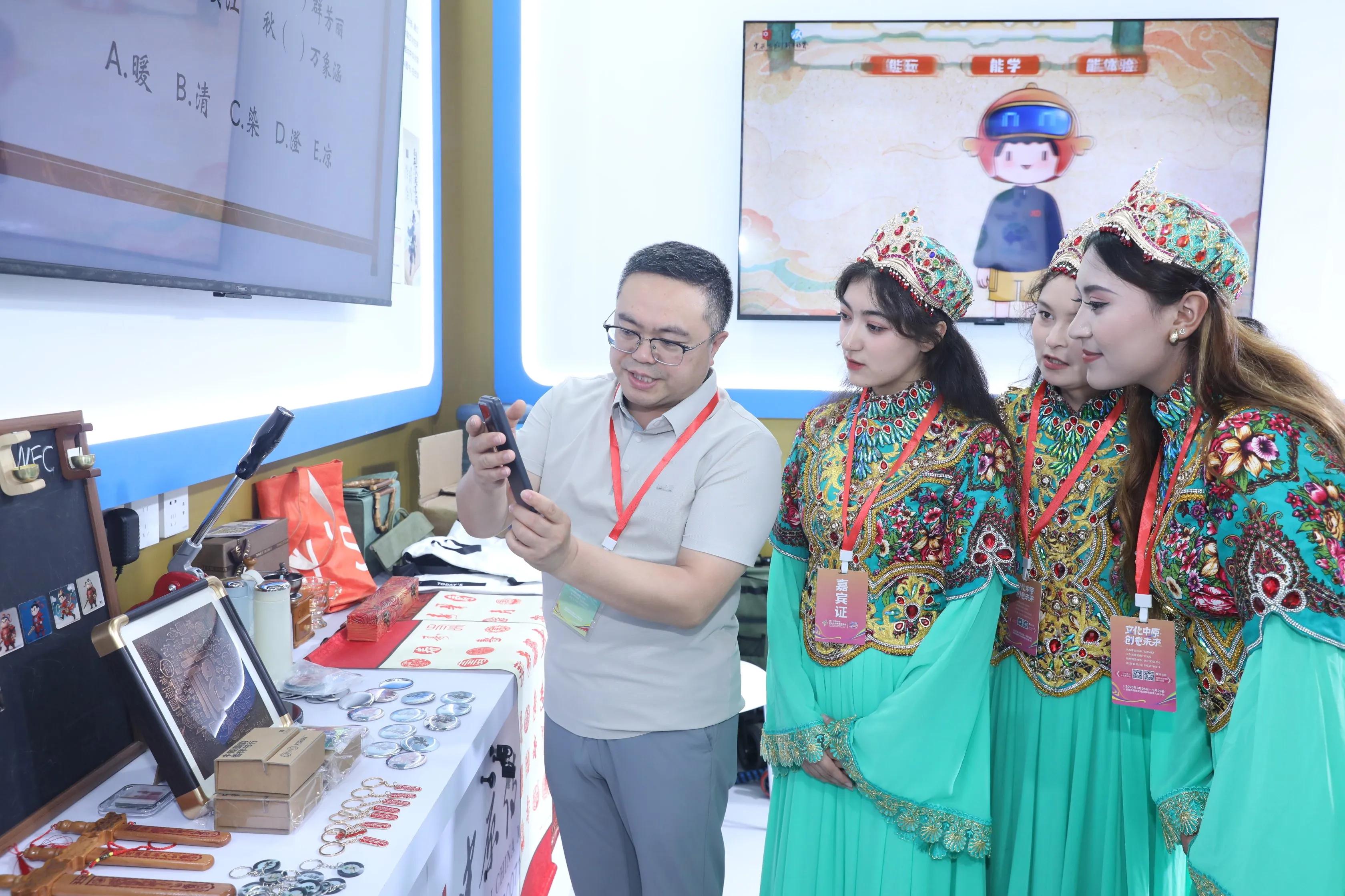 古麗格娜·買買提艾力和同伴們不只對文創(chuàng)展品著迷,中原出版展區(qū)內(nèi)的創(chuàng)新課程,也吸引了她們的注意。近年來,中原出版?zhèn)髅郊瘓F(tuán)堅持“活化內(nèi)容,觸達(dá)用戶,回歸閱讀”的核心理念,通過“內(nèi)容課程化”開發(fā)上線了一大批優(yōu)質(zhì)特色課程。此次文博會上,文心出版社“泥咕咕奇遇記”“豫見麥稈畫”兩個項目、河南新華物資集團(tuán)“妙紙生花”項目、大象出版社“國寶進(jìn)校園——《中國歷史》微縮文物博物館”融合出版項目、河南人民出版社“中華對聯(lián)文化融合出版創(chuàng)新工程”項目作為代表重點展出。