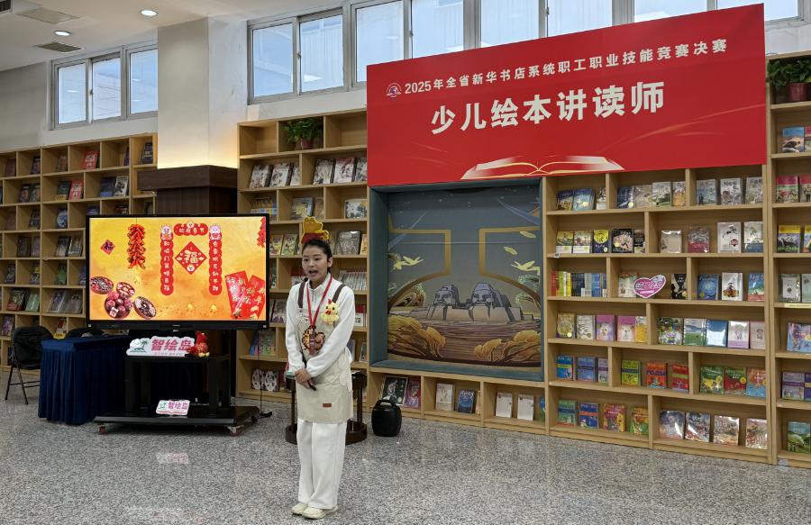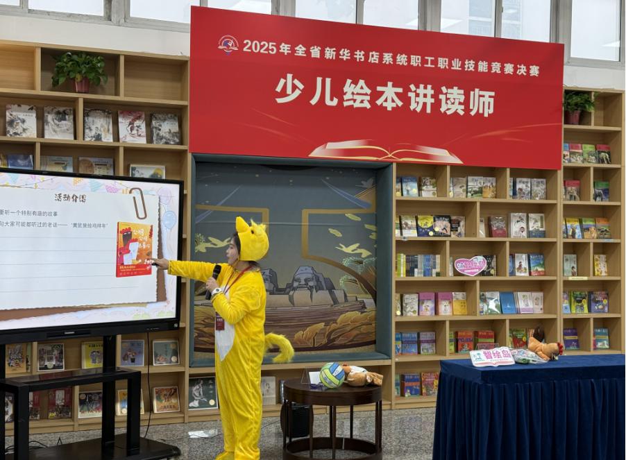 本次大賽堅持“圍繞中心、注重實戰(zhàn)、服務發(fā)展”的辦賽理念,緊扣圖書發(fā)行、閱讀服務、創(chuàng)新業(yè)務發(fā)展等核心領域,設置圖書造型及融合美陳、直播薦書、門店研學導師和少兒繪本講讀師四個競賽項目。賽事設置上,既有對傳統(tǒng)業(yè)務技能的鞏固提升,也有對新技能、新模式的探索實踐;賽事規(guī)則上,既考驗基礎功底,更注重考察創(chuàng)新能力。 決賽現(xiàn)場氛圍緊張熱烈,各項目角逐亮點紛呈。圖書造型及融合美陳項目賽場,選手們巧手翻飛,將一本本圖書打造成寓意深刻的藝術造型,讓書香與美學完美交融;直播薦書項目賽場,選手們化身專業(yè)主播,以生動講解、互動演示精準傳遞圖書核心價值,展現(xiàn)出新時代圖書發(fā)行的創(chuàng)新表達;門店研學導師項目賽場,選手們結合本土文化特色,將文學、歷史、科學等多領域知識融入研學課程,把“五育融合”具象為可感知、可參與的實踐體驗;少兒繪本講讀師項目賽場,選手們化身“故事魔法師”,以精巧靈動的設計、充滿童趣的互動,展現(xiàn)出少兒閱讀的精彩體驗。比賽間隙,選手們相互交流經驗、切磋技藝,在比拼中找差距、在交流中促提升,充分彰顯了“比學趕超”的良好氛圍。