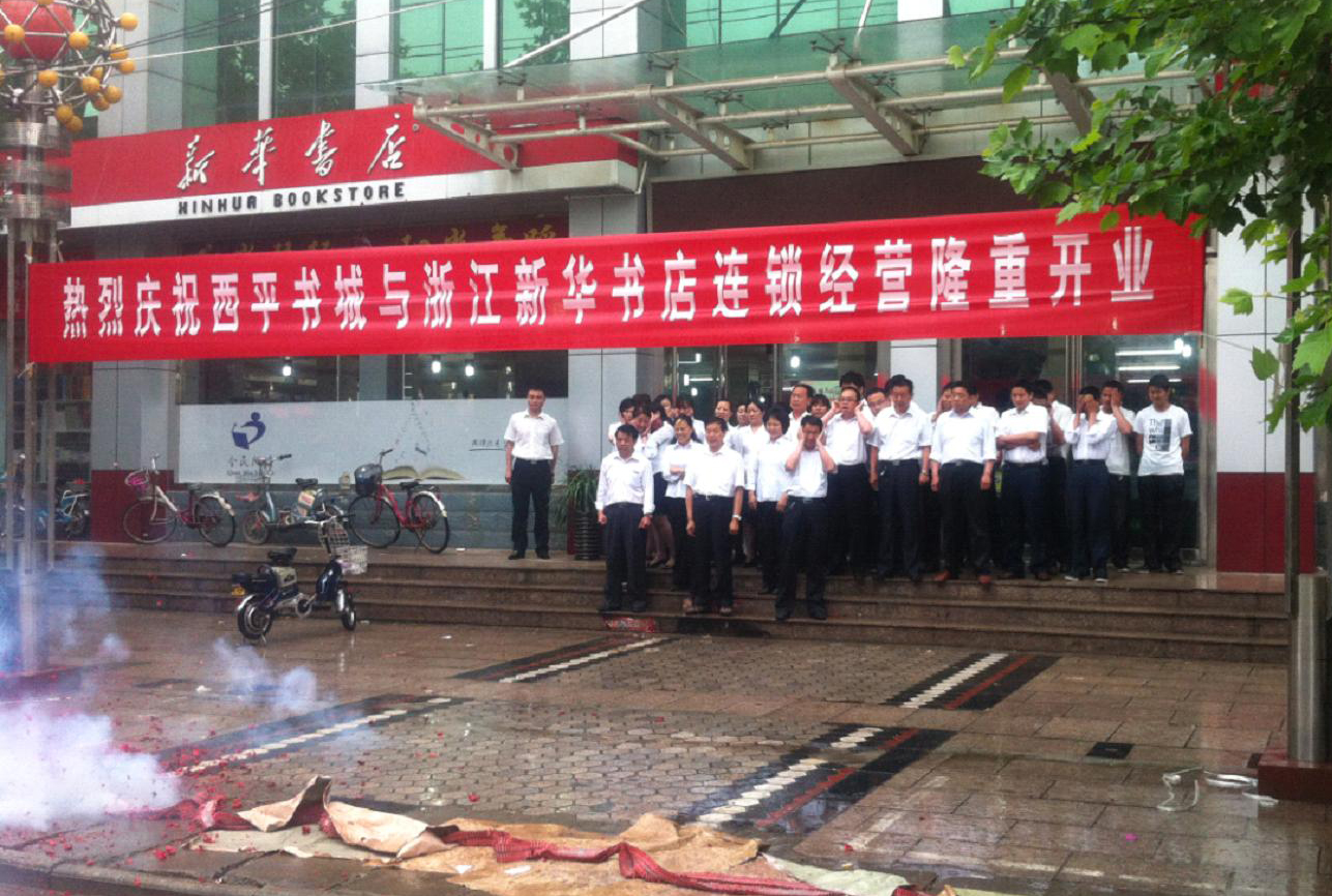 5月12日,在喜慶的爆竹聲中,重新裝修改造的西平書城隆重開業(yè),成為豫浙戰(zhàn)略合作連鎖經(jīng)營試點(diǎn)店之一。改造一新的西平書城,圖書品種計(jì)劃擴(kuò)大到2.5萬個(gè),音像制品5000個(gè),并陸續(xù)引入了電子數(shù)碼、文體用具、兒童玩具、精美禮品等大文化經(jīng)營內(nèi)容,拓展經(jīng)營范圍。