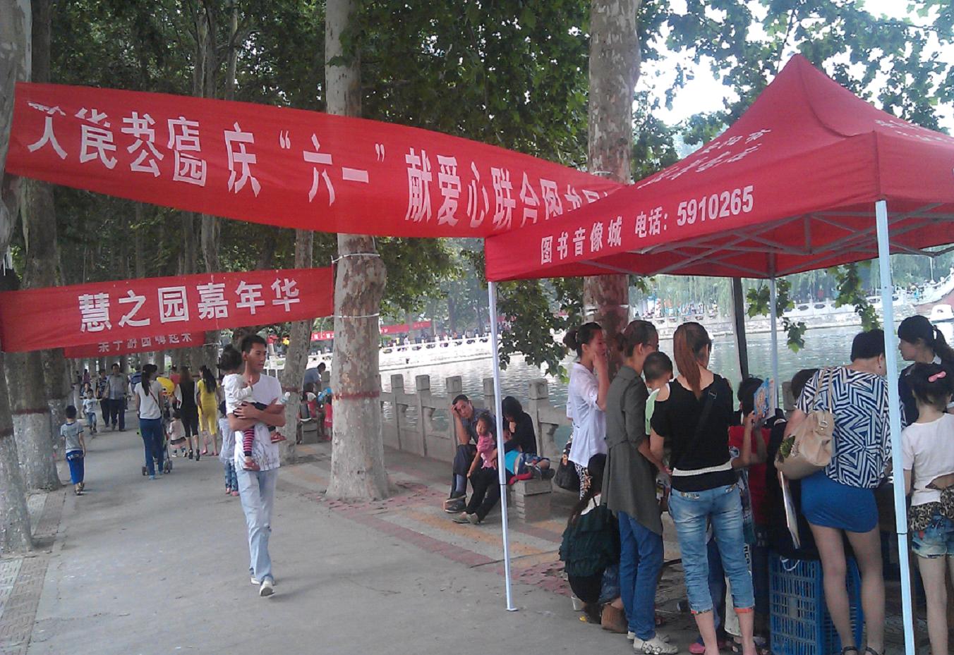 為慶!傲弧眹H兒童節(jié),安陽市店圖書音像城積極和市人民公園聯(lián)系,在6月1日到6月3日期間,聯(lián)合舉辦了為期三天的慶“六一”獻愛心圖書大展銷活動。