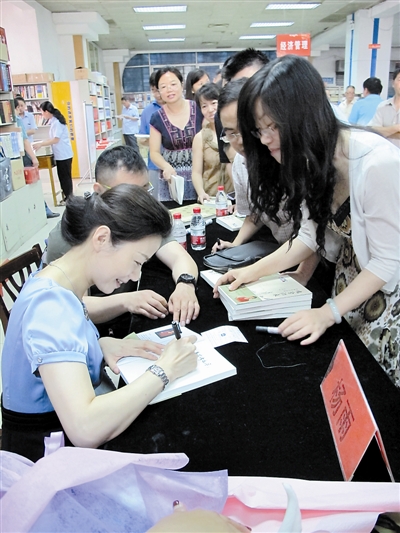 簽售會上,被譽為“中國最美女教授”的楊雨與讀者互動交流,回答了不少讀者提出的問題,在等待簽售的隊伍中,不僅有年過八旬的老人,還有不到10歲的兒童。不少讀者是《百家講壇》的忠實觀眾,每天中午都會準時守在電視機前收看這個節(jié)目,現(xiàn)在能在現(xiàn)場聽楊雨教授講課,大家都感到十分興奮了。 為搞好此次簽售活動,洛陽市店及早準備,周密部署,與新聞媒體合作,將簽售消息提前在廣播、電視、網絡上廣為傳播,吸引廣大市民踴躍參與。同時儲備了充足的貨源,在店堂通過橫幅、海報、易拉寶、專架陳列等方式大力宣傳,營造濃厚的文化氛圍,確保簽售活動取得圓滿成功。
