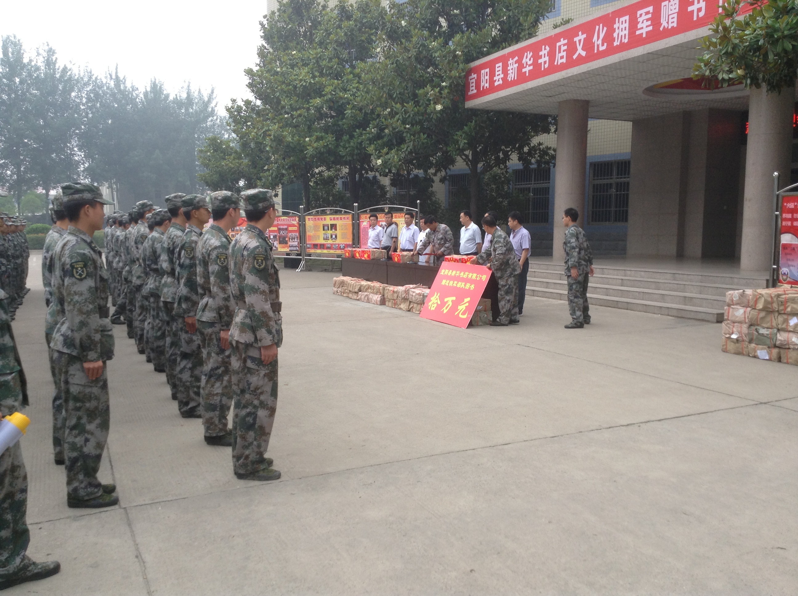 “八一”建軍節(jié),為進一步豐富部隊官兵的文化生活,宜陽縣店到駐宜鐵軍部隊開展“軍民魚水情,送書到軍營”的圖書捐贈活動,為部隊官兵捐贈十萬元的圖書,為部隊官兵送上了一份精美的節(jié)日禮物,受到了部隊首長的贊揚和官兵的熱烈歡迎;同時該店店的員工也參觀鐵軍部隊紀念館,了解駐宜鐵軍的光輝歷史和輝煌的歷程,也為該店店的員工上了一堂生動的歷史課,充分體現(xiàn)了軍愛民、民擁軍的魚水之情。
