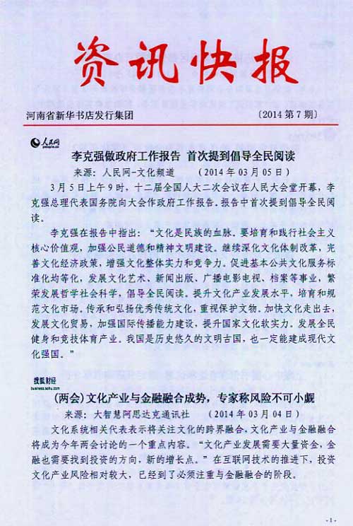來源:河南省新華書店發(fā)行集團有限公司  作者:河南省新華書店發(fā)行集團有限公司  發(fā)布時間:2014/3/7 10:06:31  閱讀次數(shù):10287