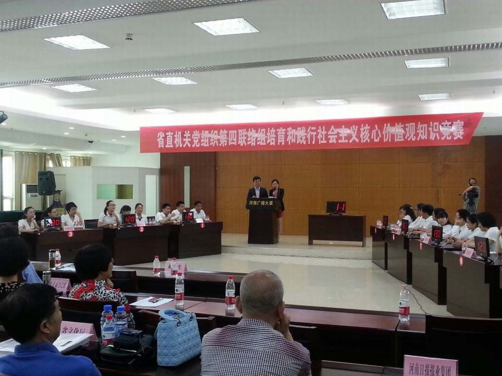 5月21日上午,由省委宣傳部主辦的省直機關(guān)黨組織第四聯(lián)絡(luò)組培育和踐行社會主義核心價值觀知識競賽在省廣電局舉行,河南省新華書店發(fā)行集團(tuán)選派的兩名選手牛聰穎、胡丹和中學(xué)生學(xué)習(xí)報社選派的選手李媛組成的中原出版?zhèn)髅郊瘓F(tuán)代表隊經(jīng)過激烈角逐,最終在18個代表隊中脫穎而出榮獲一等獎,并將被推薦參加下一輪由省委省直工委組織實施的培育和踐行社會主義核心價值觀知識競賽選拔賽。 為深入貫徹落實黨的十八大、十八屆三中全會精神和中央《關(guān)于培育和踐行社會主義核心價值觀的意見》、省委關(guān)于推進(jìn)文明河南建設(shè)的部署要求,省委省直工委從3月份開始,面向省直和中央駐豫各單位開展了培育和踐行社會主義核心價值觀知識競賽活動。發(fā)行集團(tuán)接到中原出版?zhèn)髅郊瘓F(tuán)轉(zhuǎn)發(fā)的《關(guān)于組織舉辦省直機關(guān)培育和踐行社會主義核心價值觀知識競賽的通知》后,對此項活動高度重視、積極響應(yīng),第一時間組織挑選優(yōu)秀隊員參加中原出版?zhèn)髅郊瘓F(tuán)代表隊,并在訓(xùn)練時間、學(xué)習(xí)資料等方面提供保障,使其全身心投入到緊張的準(zhǔn)備工作之中,爭取在比賽中取得好成績,為發(fā)行集團(tuán)、中原出版?zhèn)髅郊瘓F(tuán)爭光添彩。 在省直機關(guān)黨組織第四聯(lián)絡(luò)組培育和踐行社會主義核心價值觀知識競賽中,有中共河南省委宣傳部、河南日報報業(yè)集團(tuán)、河南省廣電局、河南省新聞出版局、中原出版?zhèn)髅郊瘓F(tuán)、新華社河南分社等18家省直和中央駐豫單位參加比賽。本次知識競賽分為必答題、搶答題、風(fēng)險題、附加題四個環(huán)節(jié),各參賽隊基準(zhǔn)分100分,通過競賽環(huán)節(jié)進(jìn)行增減。在比賽中,中原出版?zhèn)髅郊瘓F(tuán)代表隊的牛聰穎、胡丹、李媛三位隊員沉著冷靜,答題認(rèn)真,思維敏捷,發(fā)揮出色。她們的精彩表現(xiàn),不時贏來現(xiàn)場觀眾的一陣陣掌聲。 通過激烈角逐,中原出版?zhèn)髅郊瘓F(tuán)和河南省委宣傳部兩支代表隊最終脫穎而出,獲得一等獎,并將一起代表省直機關(guān)黨組織第四聯(lián)絡(luò)組參加6月上旬由省委省直工委組織實施的培育和踐行社會主義核心價值觀知識競賽選拔賽。 發(fā)行集團(tuán)公司將以此次參加培育和踐行社會主義核心價值觀知識競賽活動為契機,認(rèn)真落實中央《關(guān)于培育和踐行社會主義核心價值觀的意見》和省委關(guān)于推進(jìn)文明河南建設(shè)的部署要求,在廣大干部職工中間大力開展社會主義核心價值觀學(xué)習(xí)教育,引導(dǎo)大家更加深刻理解其科學(xué)內(nèi)涵和精神實質(zhì),推動社會主義核心價值觀的廣泛傳播,進(jìn)一步增強對社會主義核心價值觀的認(rèn)知認(rèn)同和培育踐行的自覺性。
