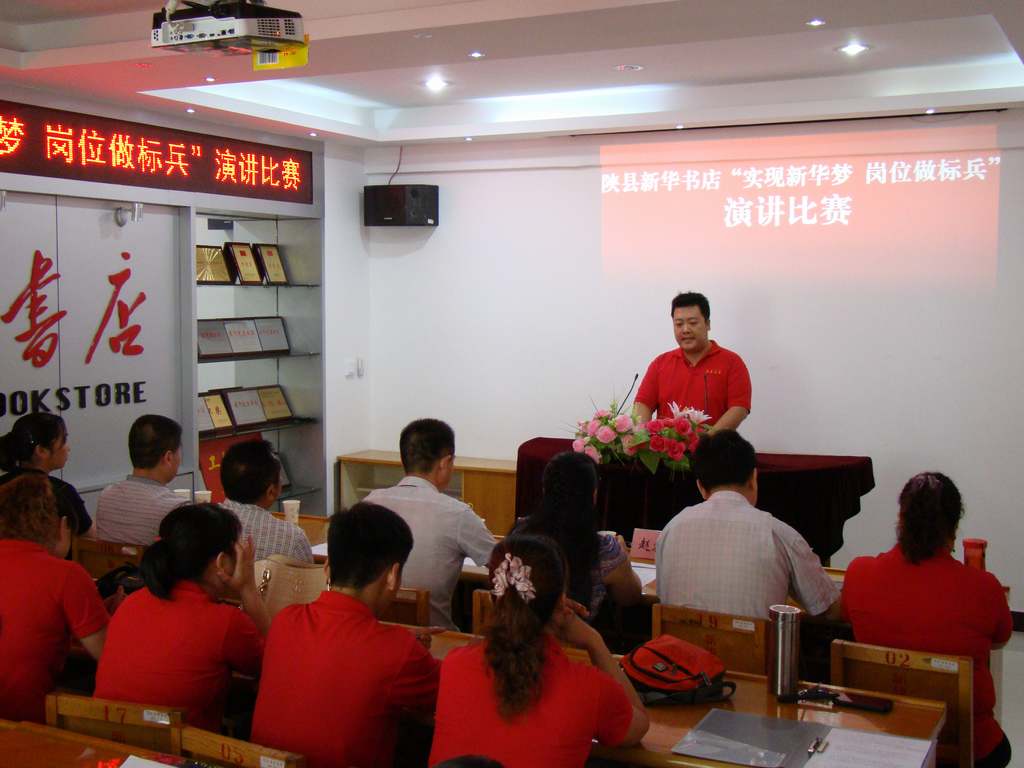 日前,陜縣縣店舉辦“實(shí)現(xiàn)新華夢 崗位做標(biāo)兵”演講比賽。本次演講比賽呈現(xiàn)的特點(diǎn):一是準(zhǔn)備工作細(xì)。二是參與率高。三是比賽公平公正。四是演講效果好。參加選手統(tǒng)一著裝,分別從實(shí)際工作、對書籍的熱愛、對黨的贊揚(yáng)等方面抒發(fā)了對崗位的熱愛,對新華夢的追求,立志做崗位標(biāo)兵,成為崗位能手。