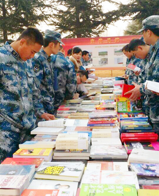 開(kāi)封市店一直以來(lái)堅(jiān)持與駐汴部隊(duì)官兵進(jìn)行軍民共建、送書(shū)進(jìn)軍營(yíng)等相關(guān)活動(dòng),元旦期間,該店積極開(kāi)展了2015元旦送書(shū)進(jìn)軍營(yíng)”活動(dòng),在駐汴部隊(duì)的領(lǐng)導(dǎo)和官兵的大力支持下,活動(dòng)取得了圓滿成功。