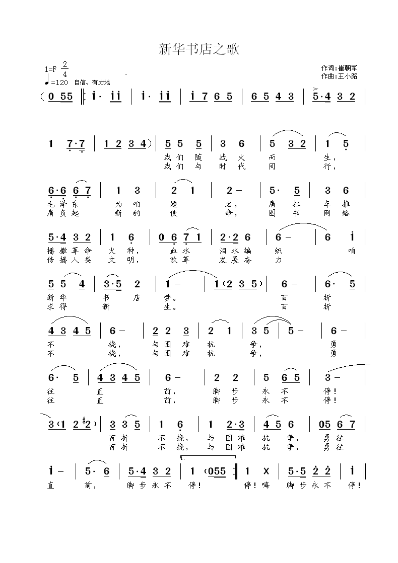 這首《新華書店之歌》由登封市店經(jīng)理崔朝軍填詞,河南省歌舞演藝集團駐團首席作曲家王小路譜曲,該歌一經(jīng)面世,立即受到廣大新華書店干部員工的喜愛和傳唱。