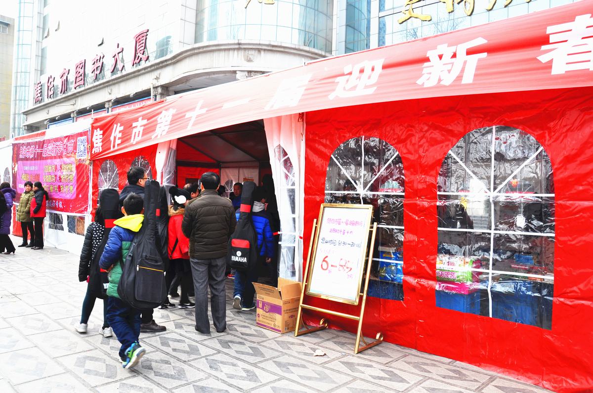 2月28日(農(nóng)歷初十),焦作市店在圖書大廈門前舉辦了為期7天的“第十一屆迎新春書市”活動(dòng)。今年書市全場(chǎng)圖書8.5折,文教圖書7.5折,特價(jià)新書6折,精選了社科類、文藝類、少兒類、文教類、科技類、特價(jià)新書類圖書及文化體育藝術(shù)類書籍和產(chǎn)品供讀者閱讀及選購(gòu)。