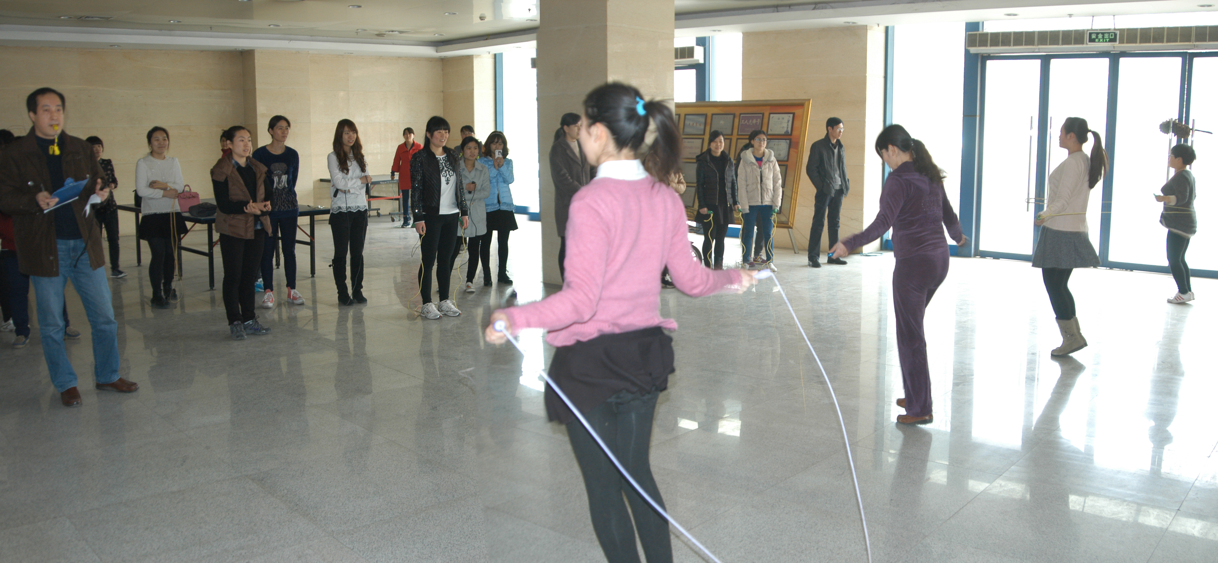 為紀念“三八”國際婦女節(jié)的到來,全面貫徹黨的婦女政策,營造濃郁的節(jié)日氣氛,豐富女職工的業(yè)余文化生活,增強企業(yè)凝聚力,激勵廣大女職工以飽滿的熱情和最佳的工作狀態(tài)在本職崗位上建功立業(yè),發(fā)行集團工會在3月2日至3月6日組織舉辦了女職工慶“三八節(jié)”跳繩比賽活動。
