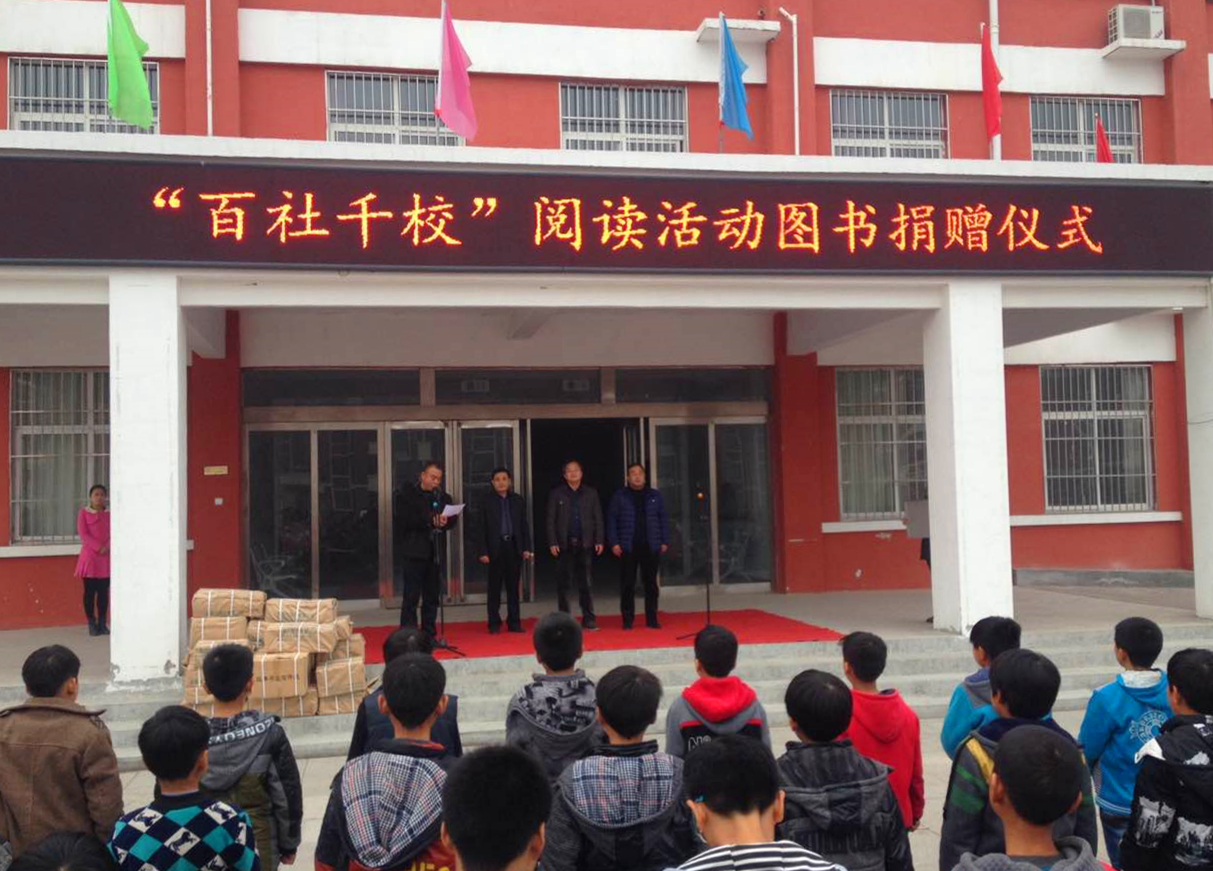 近日,由大象出版社和輝縣市店聯(lián)合舉辦的“百社千!遍喿x活動(dòng)圖書捐贈(zèng)儀式在趙固中心校舉行,市委宣傳部、市教育局等部門出席儀式。